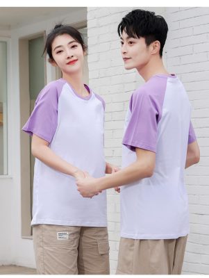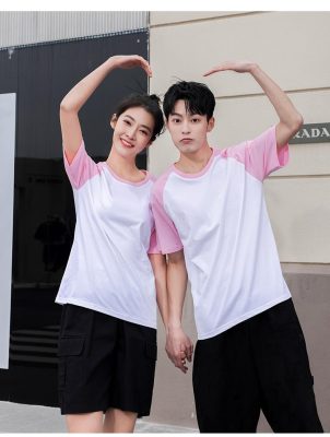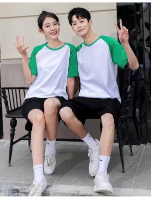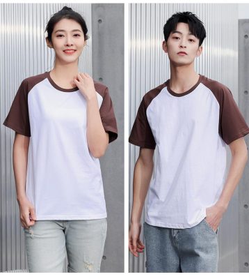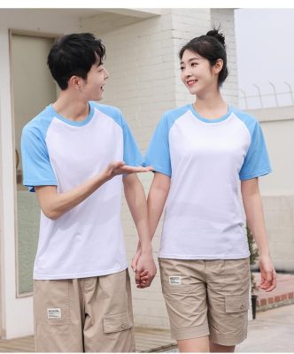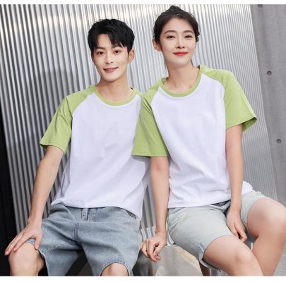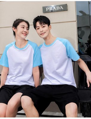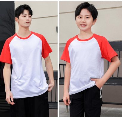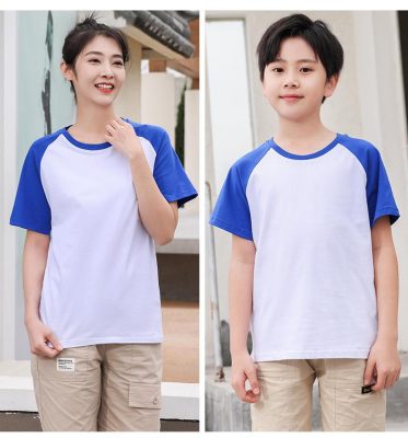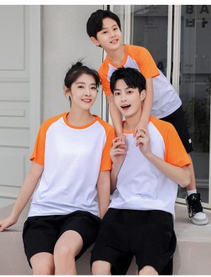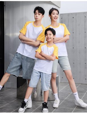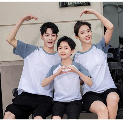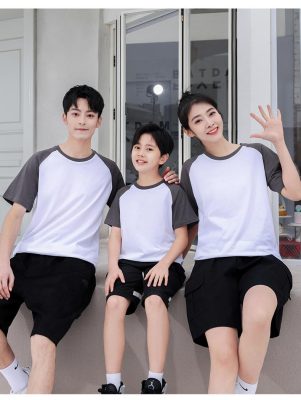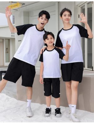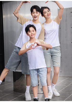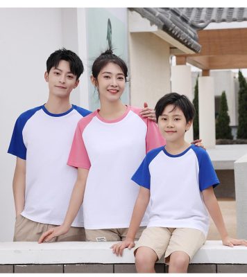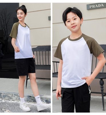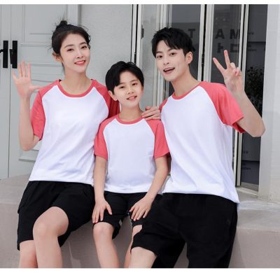 短袖圓領插肩拼色親子裝