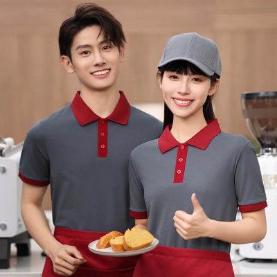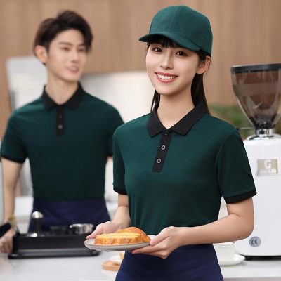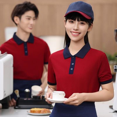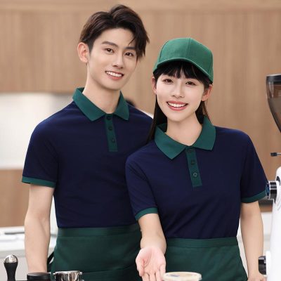 短袖POLO拼色餐飲酒店客房高彈性工作服